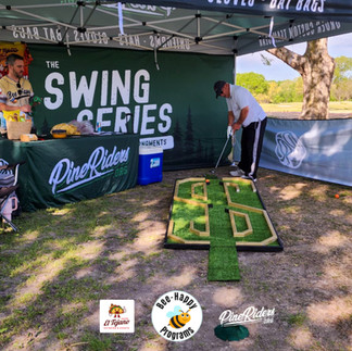 Our joint sponsorship setup brought some serious energy to the course. We rolled in with the full PineRiders 10x20 branded tent, creating a fun and interactive experience for golfers and guests alike.